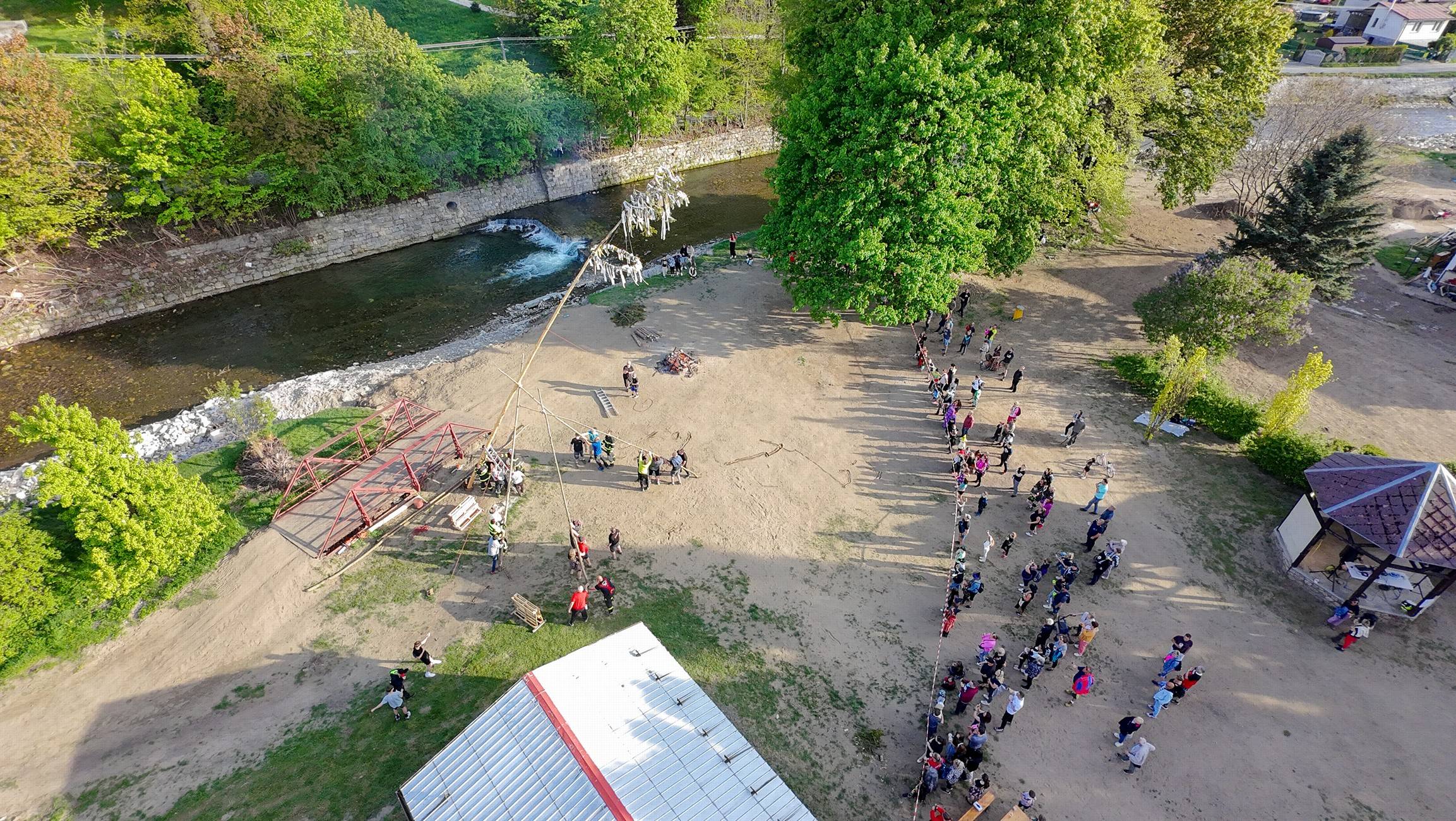 Mezitím se připravené májky chopili naši udatní mládenci ????, hasiči ???? i fotbalisti ⚽. Společnými silami postavili májku na své místo, odkud na nás bude celý měsíc dohlížet a připomínat tuto krásnou tradici ????.